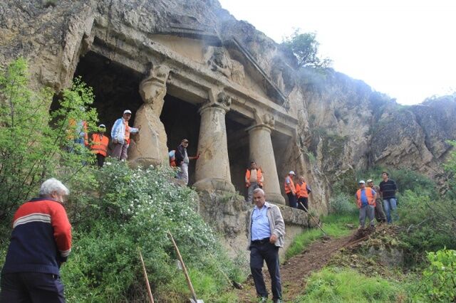 Mezar çevresinde bulunan kaya işlemeleri, çevre köylerce “şeytan basamakları” adı verilen insan yapımı bir basamaklı tünelin bulunması bu alanın sadece mezar için kullanılmadığını ve çok eski bir yerleşim yeri olduğunu göstermektedir.
