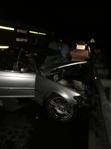 Edinilen bilgiye göre, Sinop istikametinden Boyabat'a seyir halinde bulunan T.Ö idaresindeki 34 VA ... plakalı otomobil tünel çıkışında tır sollamaya geçti.Tır'a yan bölgeden vuran araç karşı istikametten gelen kamyonet ile çarpışarak savruldu.Savrulan araç bariyerlere çarparak durabildi.