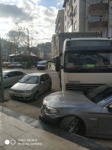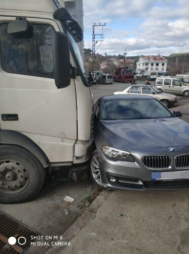 Edinilen bilgiye göre öğle saatlerinde Boyabat Pazaryeri mevkiinde yük indiren tır'ın freninin boşalması sonucunda trafik kazası meydana geldi.Freni boşalan tır bölgede park halinde bulunan 34 DK .... plakalı araca çarparak durabildi.