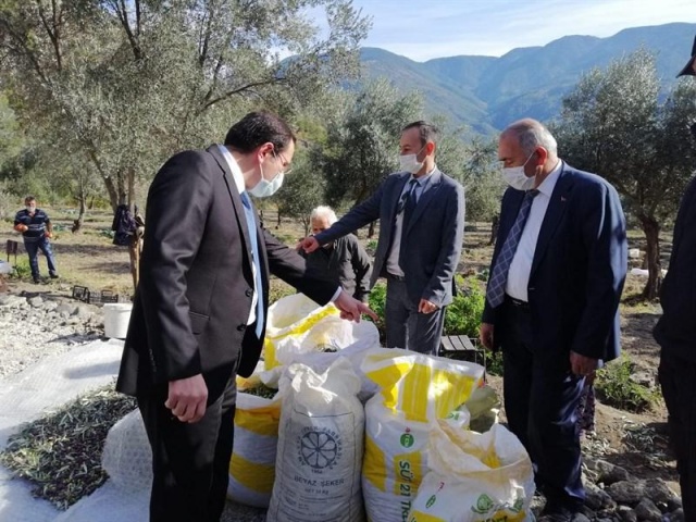 Üretim ve hasat aşaması hakkında üreticilerden bilgi alan Kaymakam Türker ; Saraydüzü'nde verimli zeytin bahçelerinin varlığından duyduğu memnuniyeti dile getirdi.